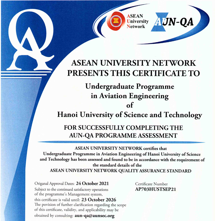 Chương trình Kỹ thuật hàng không được kiểm định 2021 bởi AUN-QA
