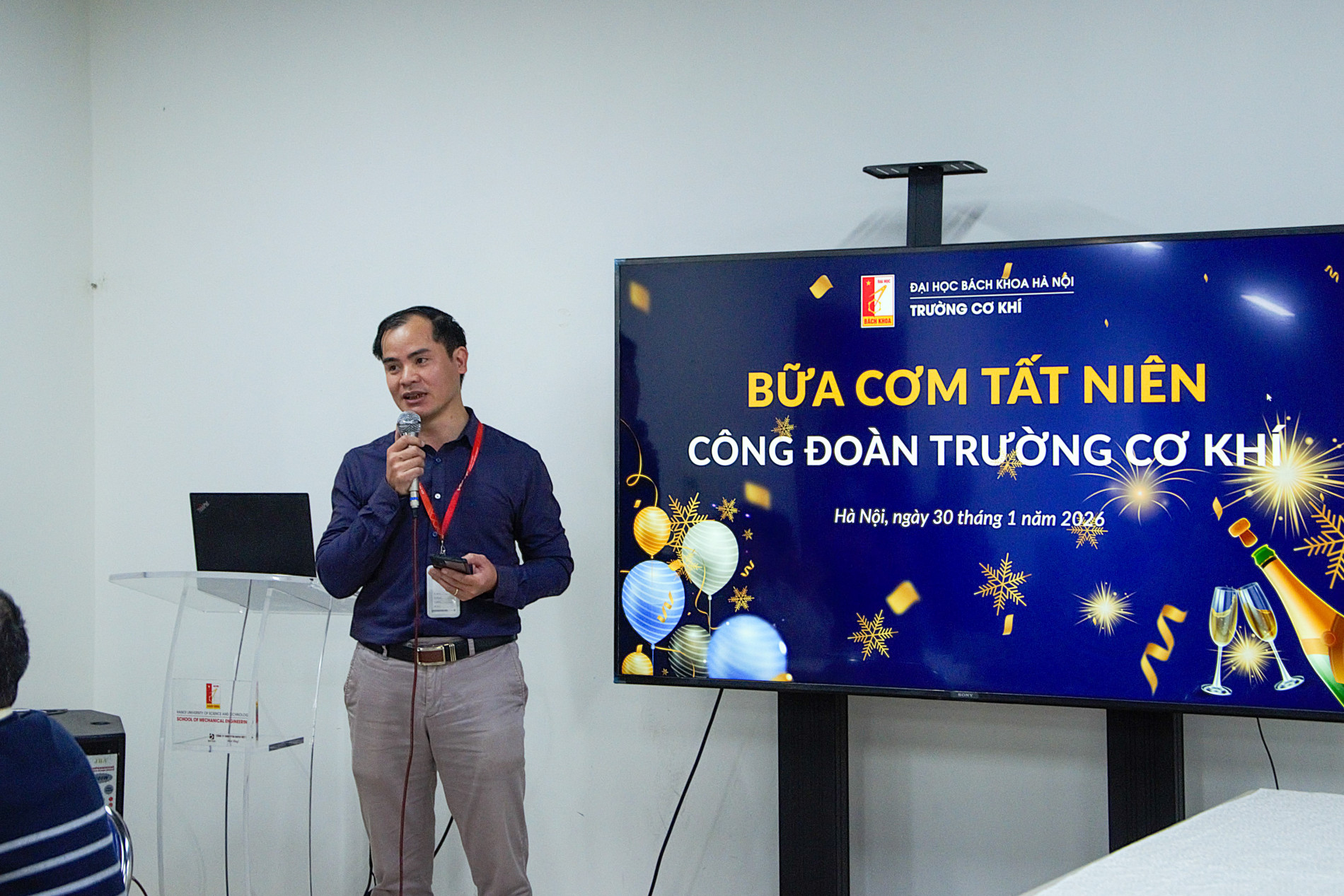 Bữa cơm tất niên không chỉ là dịp để mọi người cùng nhau nhìn lại một năm đã qua với nhiều nỗ lực và thành quả, mà còn là khoảng thời gian quý giá để các cán bộ, nhân viên Trường Cơ khí - ĐHBKHN được quây quần, sẻ chia, tăng cường sự gắn kết và thắt chặt tình đồng nghiệp. Trong không gian ấm cúng, thân tình, những câu chuyện công việc, những kỷ niệm vui buồn của một năm cũ được chia sẻ, tạo nên không khí gần gũi, chan hòa và đầy cảm xúc.