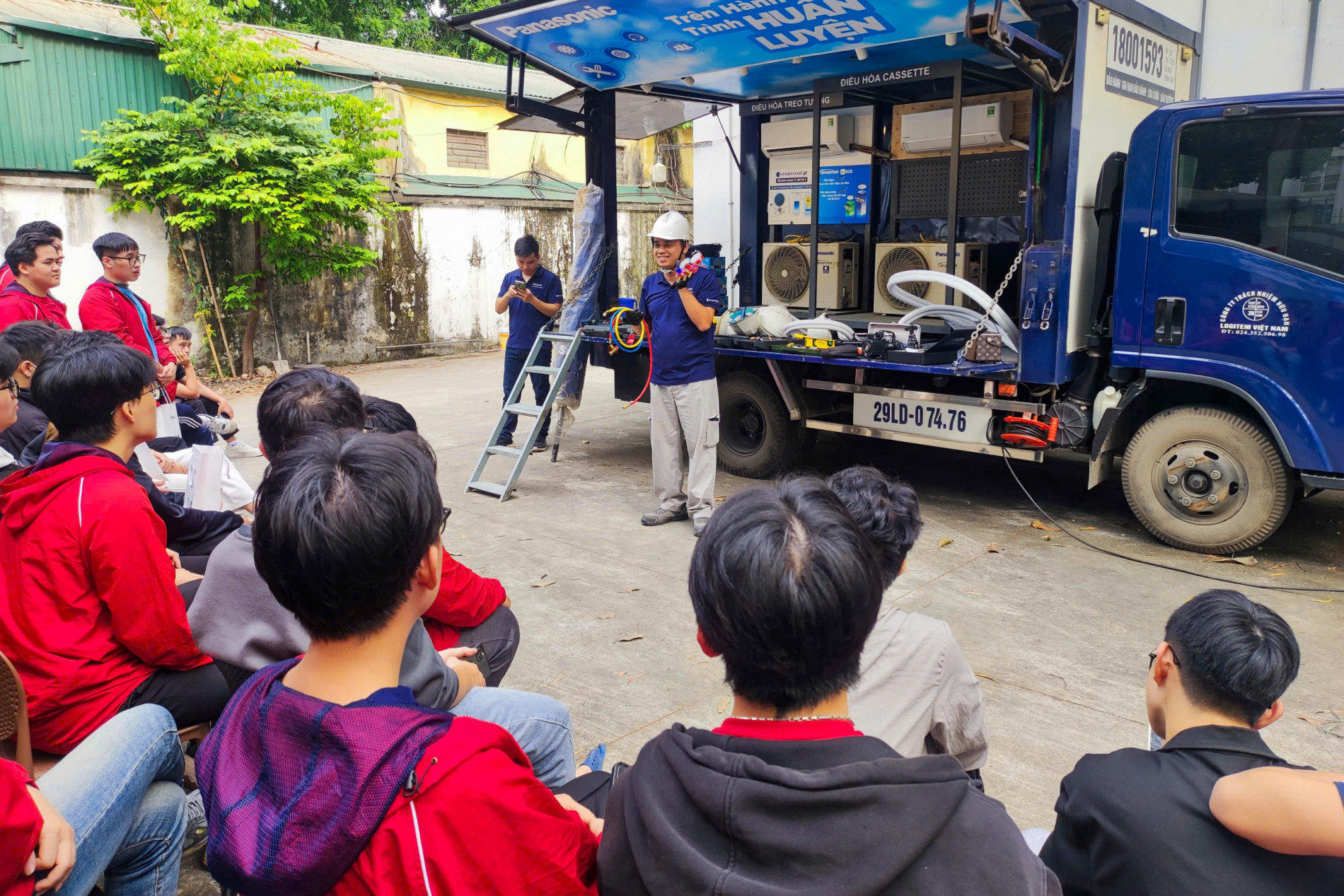 Sinh viên khoa Năng lượng nhiệt được trực tiếp tham gia các bài thực hành trực quan sinh động trên hệ thống thiết bị thực tế; đồng thời có cơ hội tìm hiểu, trải nghiệm những sản phẩm mới nhất của Panasonic. Dưới sự hướng dẫn của đội ngũ kỹ thuật viên giàu kinh nghiệm, các bạn sinh viên được rèn luyện các thao tác kỹ thuật theo tiêu chuẩn nhà sản xuất, củng cố kỹ năng xử lý tình huống, chẩn đoán và khắc phục sự cố thường gặp trong hệ thống HVAC.
