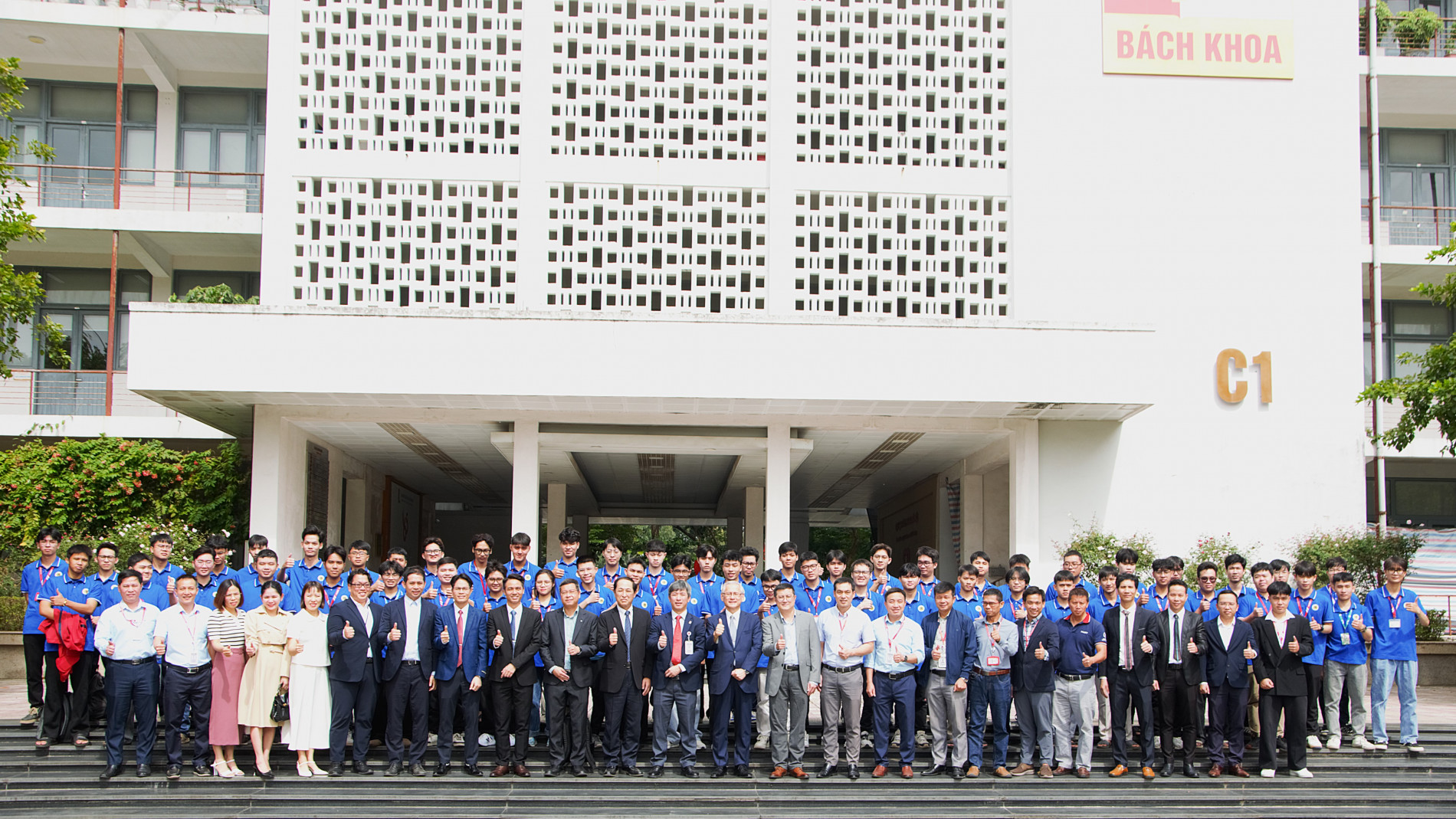 Thầy cô trường Cơ khí, đại diện các doanh nghiệp và thành viên Joint Lab chụp ảnh tại quảng trường C1.