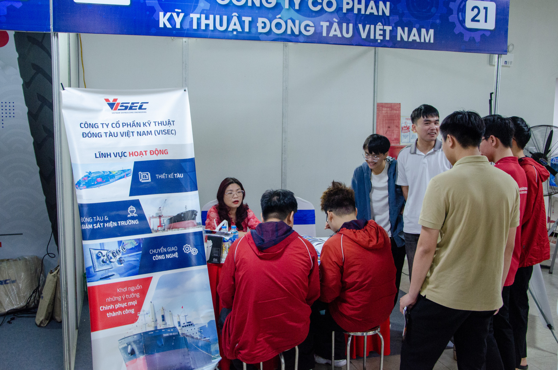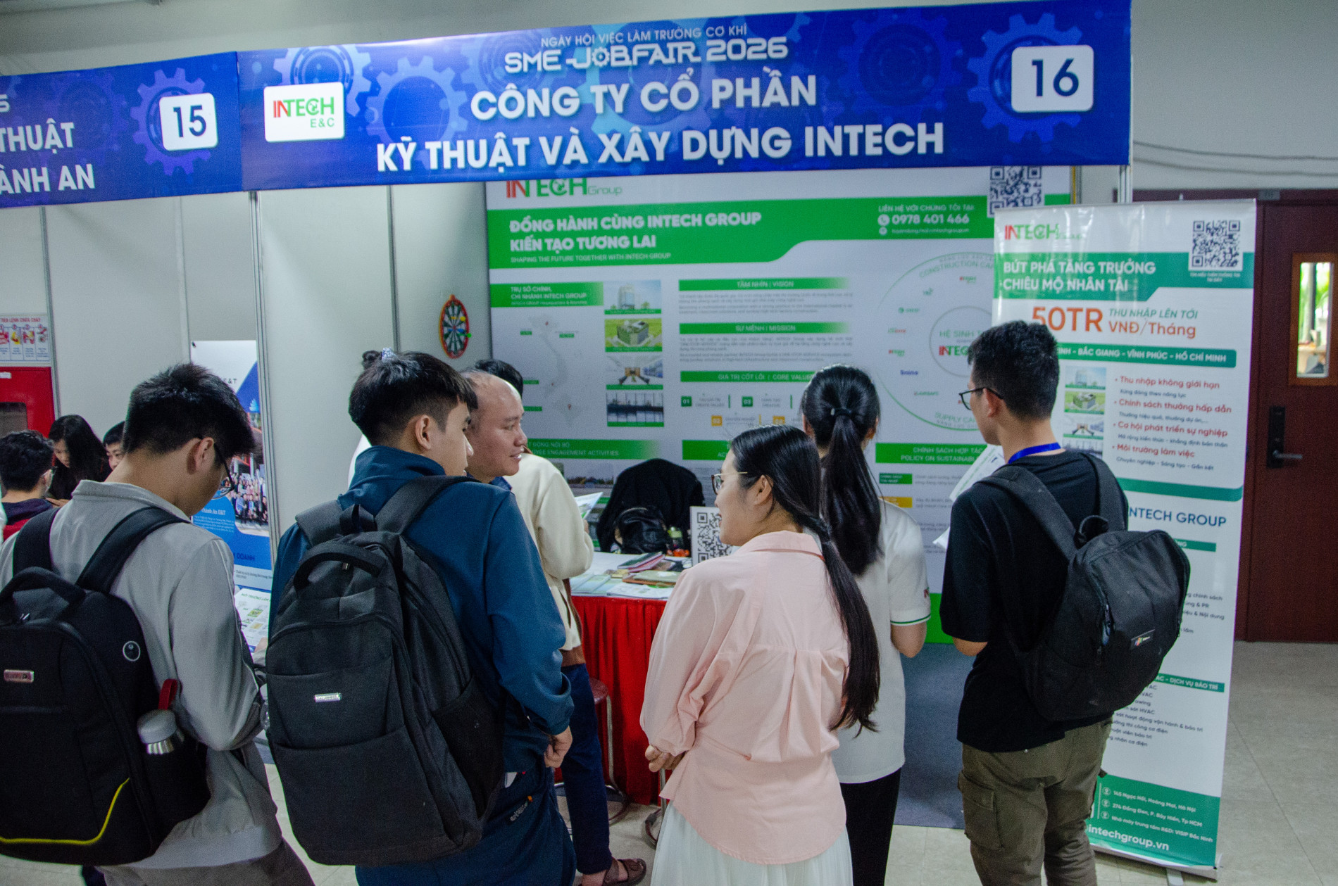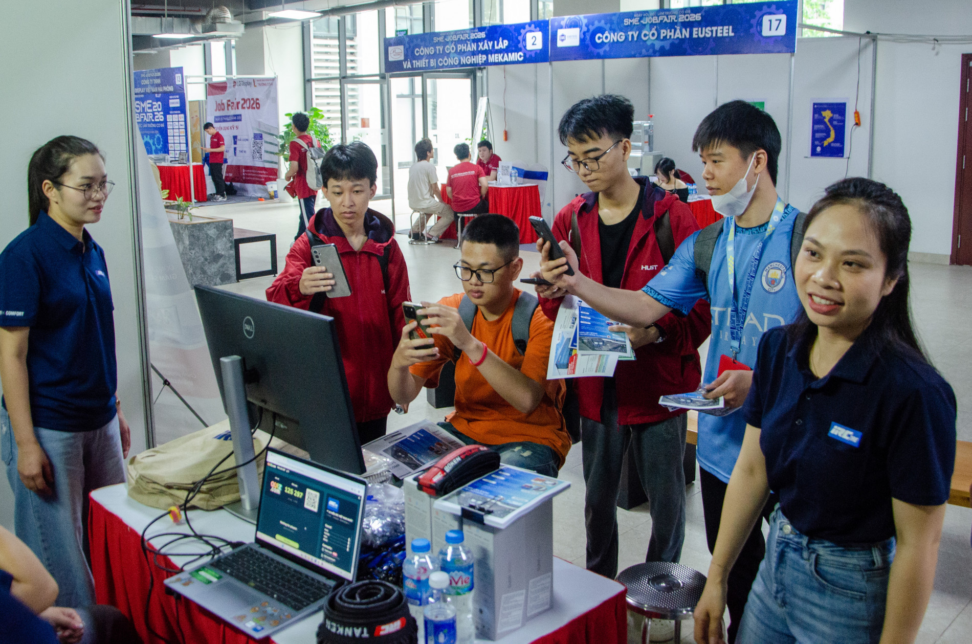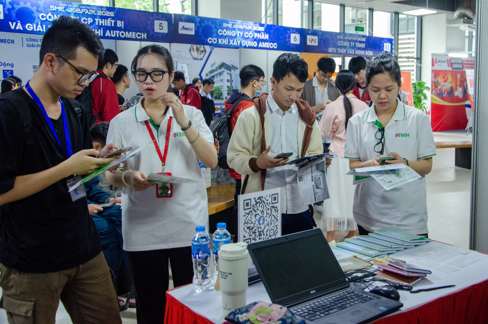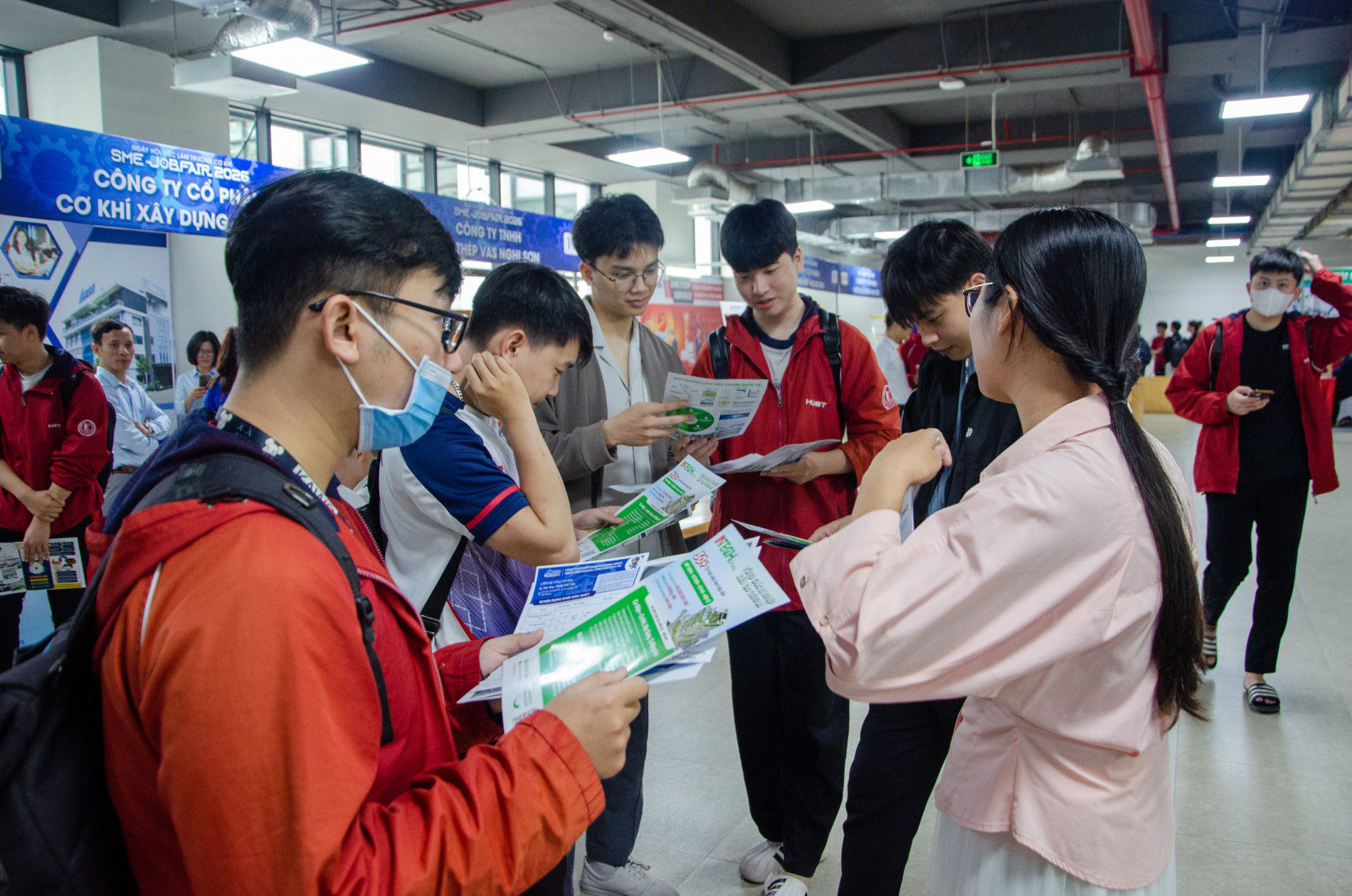 Sinh viên trường Cơ khí tìm hiểu thông tin tuyển dụng tại các gian hàng của các doanh nghiệp