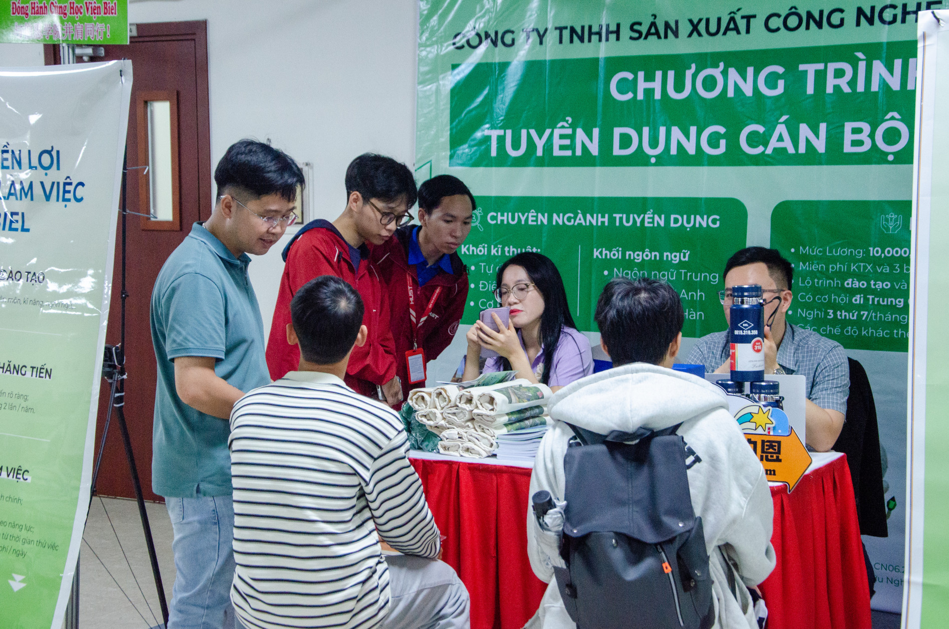 Nhiều bạn sinh viên đã chủ động chuẩn bị hồ sơ, tham gia phỏng vấn nhanh ngay tại sự kiện, thể hiện tinh thần cầu thị và sẵn sàng hội nhập với thị trường lao động.