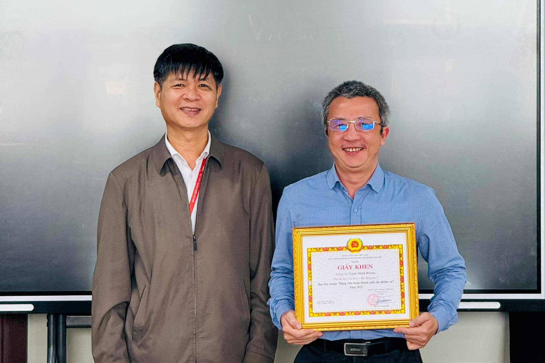 Trao giấy khen của Đảng ủy Đại học BKHN cho các Đảng viên hoàn thành xuất sắc nhiệm vụ năm 2025.