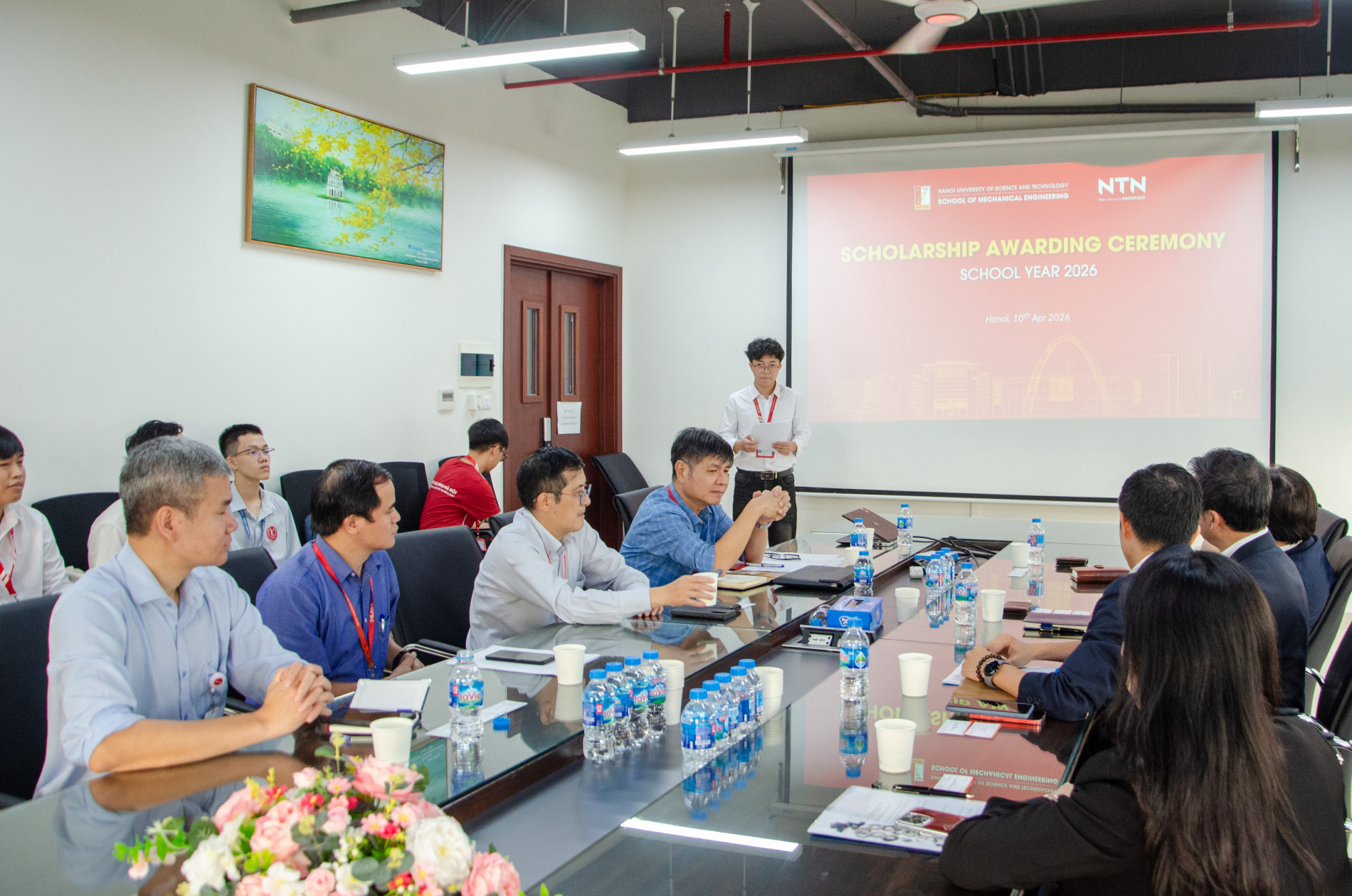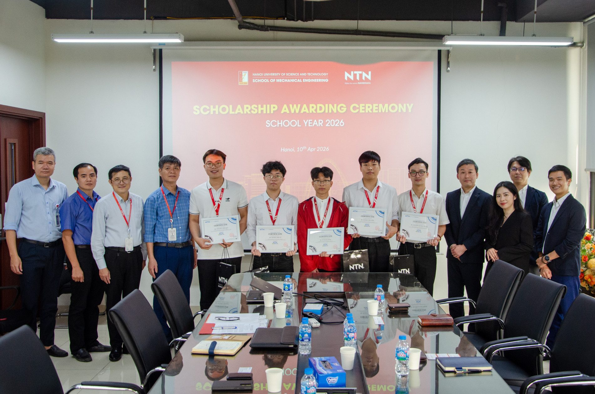 Tham dự buổi trao học bổng có đại diện Ban Giám hiệu Trường Cơ khí, lãnh đạo và cán bộ của Công ty NTN Bearing Việt Nam cùng các sinh viên được nhận học bổng.
