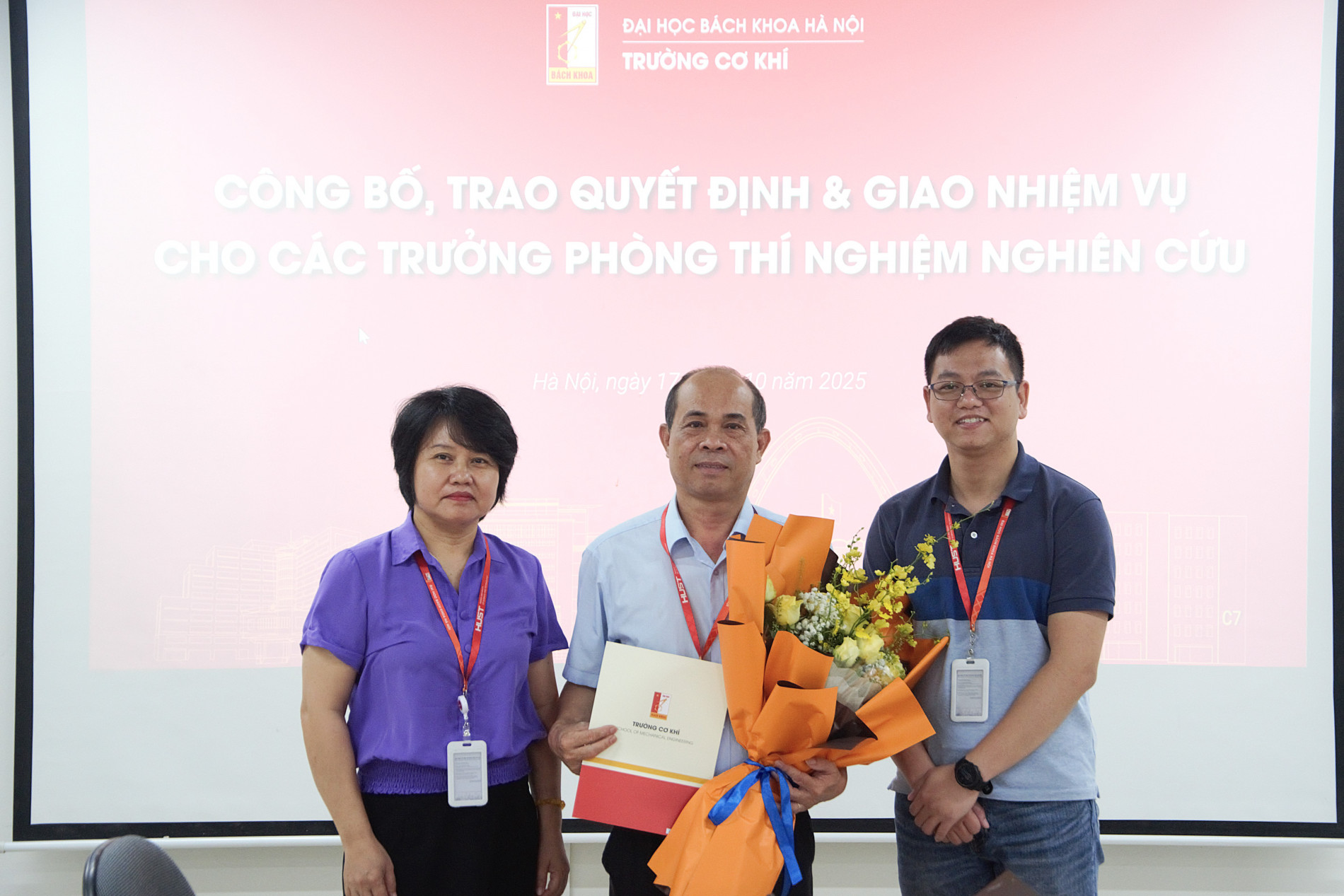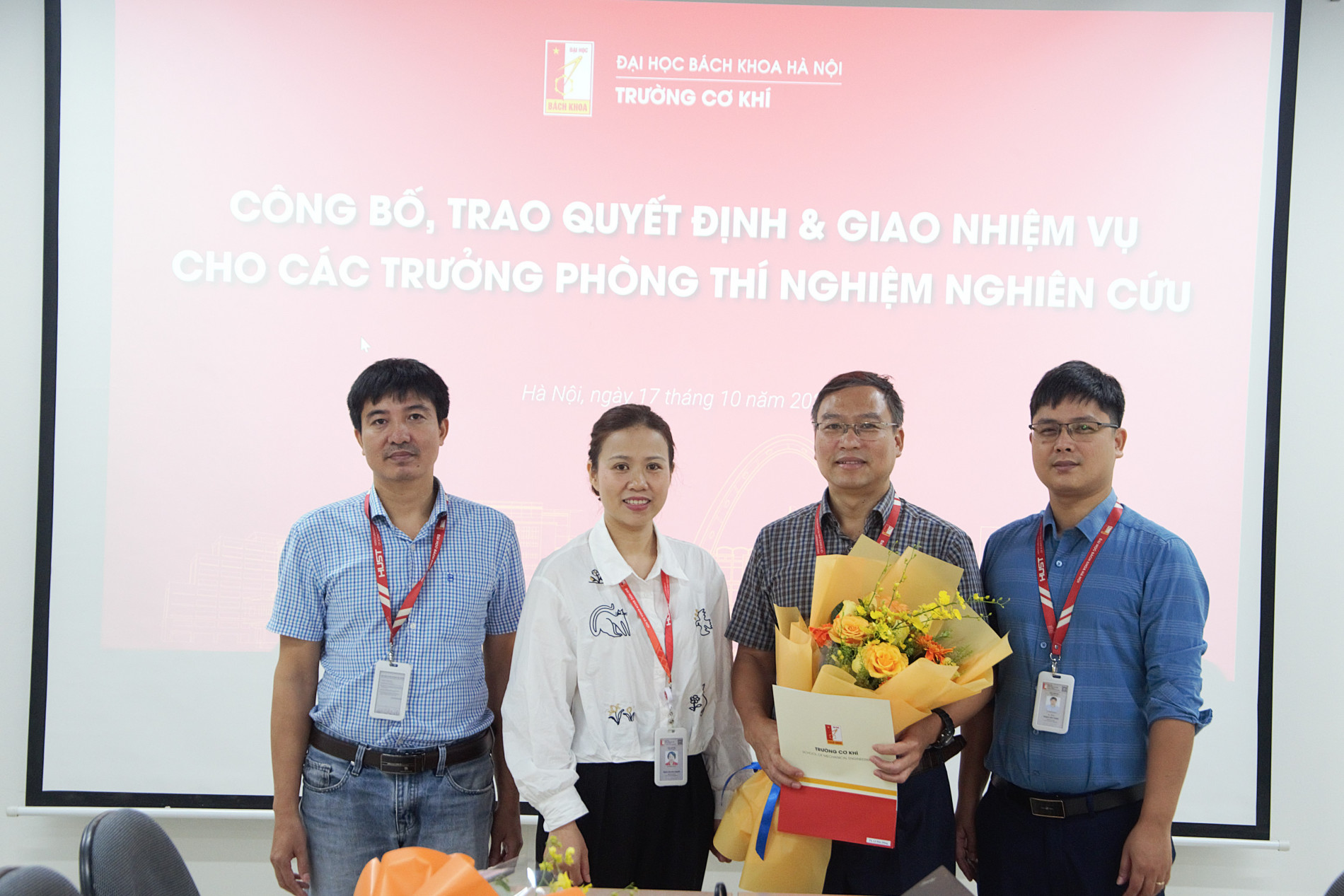 Trường Cơ khí - ĐHBKHN là đơn vị hàng đầu trong đào tạo và nghiên cứu các lĩnh vực Cơ khí, Cơ điện tử, Cơ khí động lực, Ô tô, Hàng không và Năng lượng nhiệt. Ngoài các phòng thí nghiệm phục vụ đào tạo, nhà trường có 05 phòng thí nghiệm nghiên cứu thuộc hệ thống các phòng thí nghiệm của ĐHBKHN. Với mục tiêu hoàn thiện nhân sự các phòng thí nghiệm, trường Cơ khí đã thực hiện việc lựa chọn và công nhận các trưởng phòng thí nghiệm nghiên cứu của nhà trường.