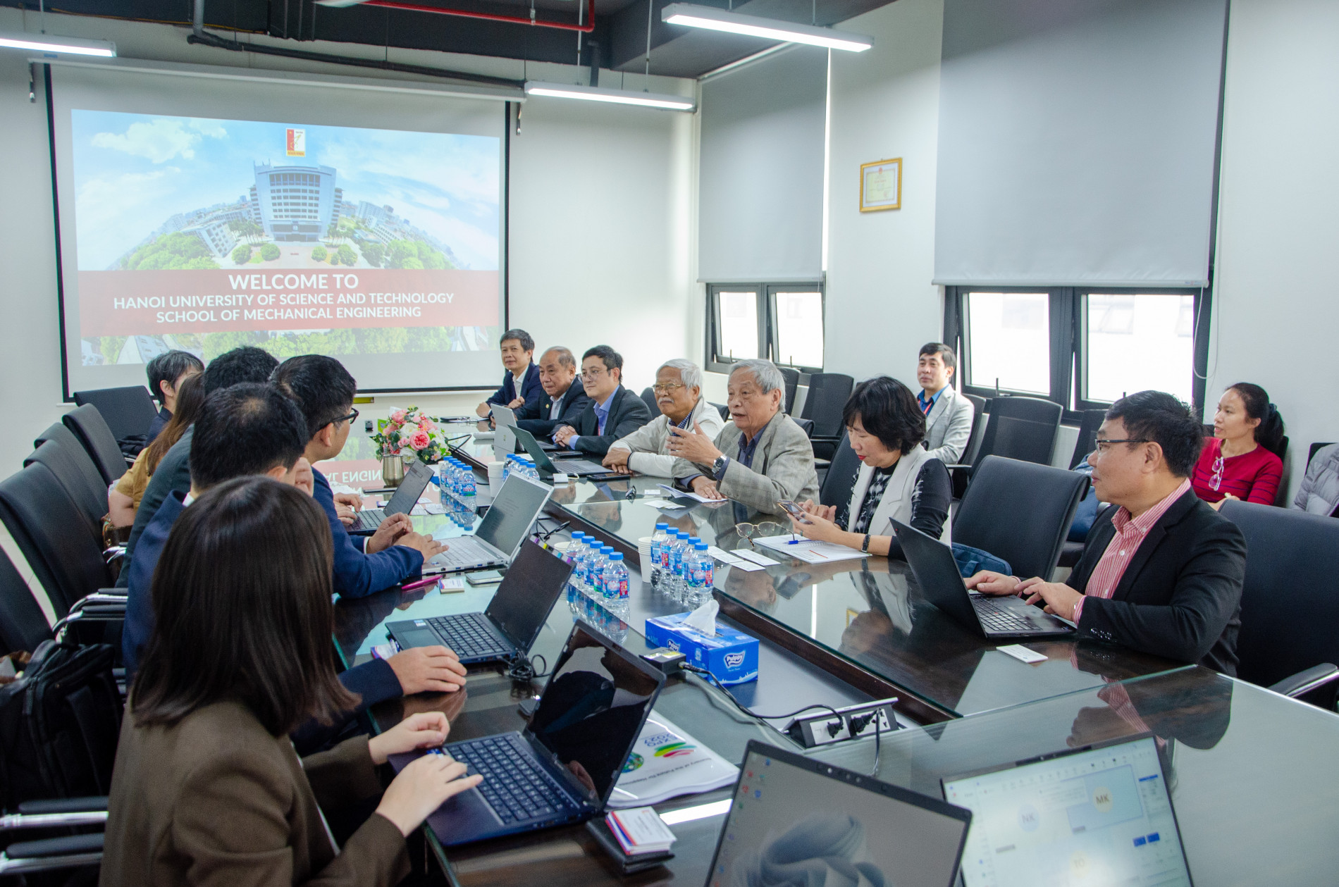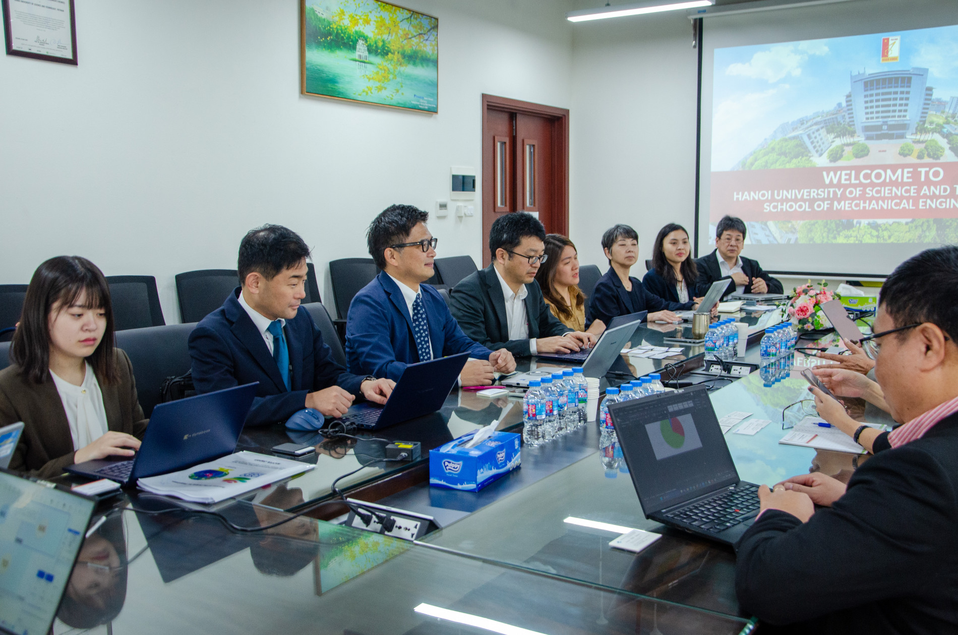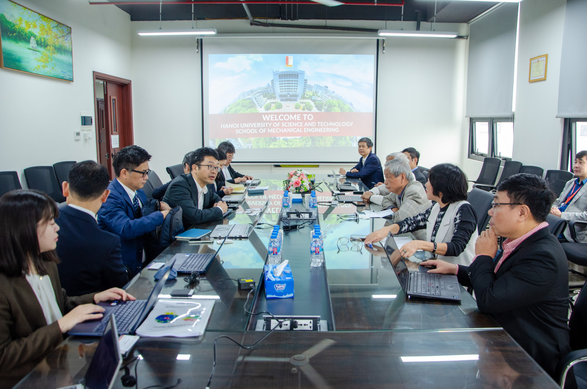 Buổi làm việc được tổ chức theo đề nghị của phía Bộ Môi trường Nhật Bản. PGS. Nguyễn Việt Dũng – Phó Hiệu trưởng Trường Cơ khí chủ trì buổi làm việc; đồng chủ trì TS. Tạ Quang Ngọc – Nguyên Ủy viên Trung ương Đảng, Chủ tịch Hội Khoa học Kỹ thuật Lạnh và Điều hòa không khí Việt Nam (VISRAE).